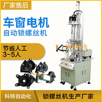 車窗電機核心是升降器,設(shè)置在每個車門內(nèi)置可以變換轉(zhuǎn)運方向的電動機,電機產(chǎn)品在裝配的過程中,打螺釘便成為一種最基本的操作,通常是人工利用電動螺絲刀 或者手工對產(chǎn)品進行一顆一顆擰緊裝配,但是這種人工組裝方式使人工成本高,勞動效率低和容易導(dǎo)致產(chǎn)品質(zhì)量差,不利用實現(xiàn)大規(guī)?;a(chǎn)。