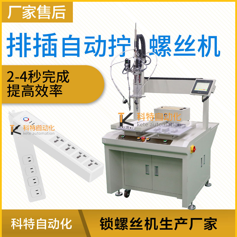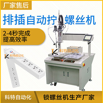 那么排插在生產(chǎn)線進(jìn)行大批量產(chǎn)品生產(chǎn)、加工、裝配時(shí),涉及到螺絲安裝的時(shí)候,需要人工手工完成,人工不僅需要對(duì)工件進(jìn)行夾緊定位,還需要人工操作提供螺絲、對(duì)螺絲進(jìn)行定位和操作手動(dòng)擰螺絲工具,對(duì)操作人員的技術(shù)方面難度加大了一點(diǎn),同時(shí)還會(huì)降低加工效率,并且也帶來(lái)了大量人工成本的提高等,針對(duì)這一問(wèn)題,科特自動(dòng)化根據(jù)產(chǎn)品設(shè)計(jì)一臺(tái)自動(dòng)加擰緊工螺絲設(shè)備可以在流水作業(yè)時(shí),自動(dòng)輸送、自動(dòng)供料、自動(dòng)夾緊工件、自動(dòng)分螺絲方向、自動(dòng)定位、自動(dòng)找正螺孔、自動(dòng)扭緊的自動(dòng)加工螺絲設(shè)備,以解決人工完成上述操作帶來(lái)的產(chǎn)品一致性差、操作效率低以及人工成本高的問(wèn)題。 排插的外殼體需8顆螺絲鎖付,螺絲類(lèi)型為內(nèi)十字圓頭螺絲,為提高效率。